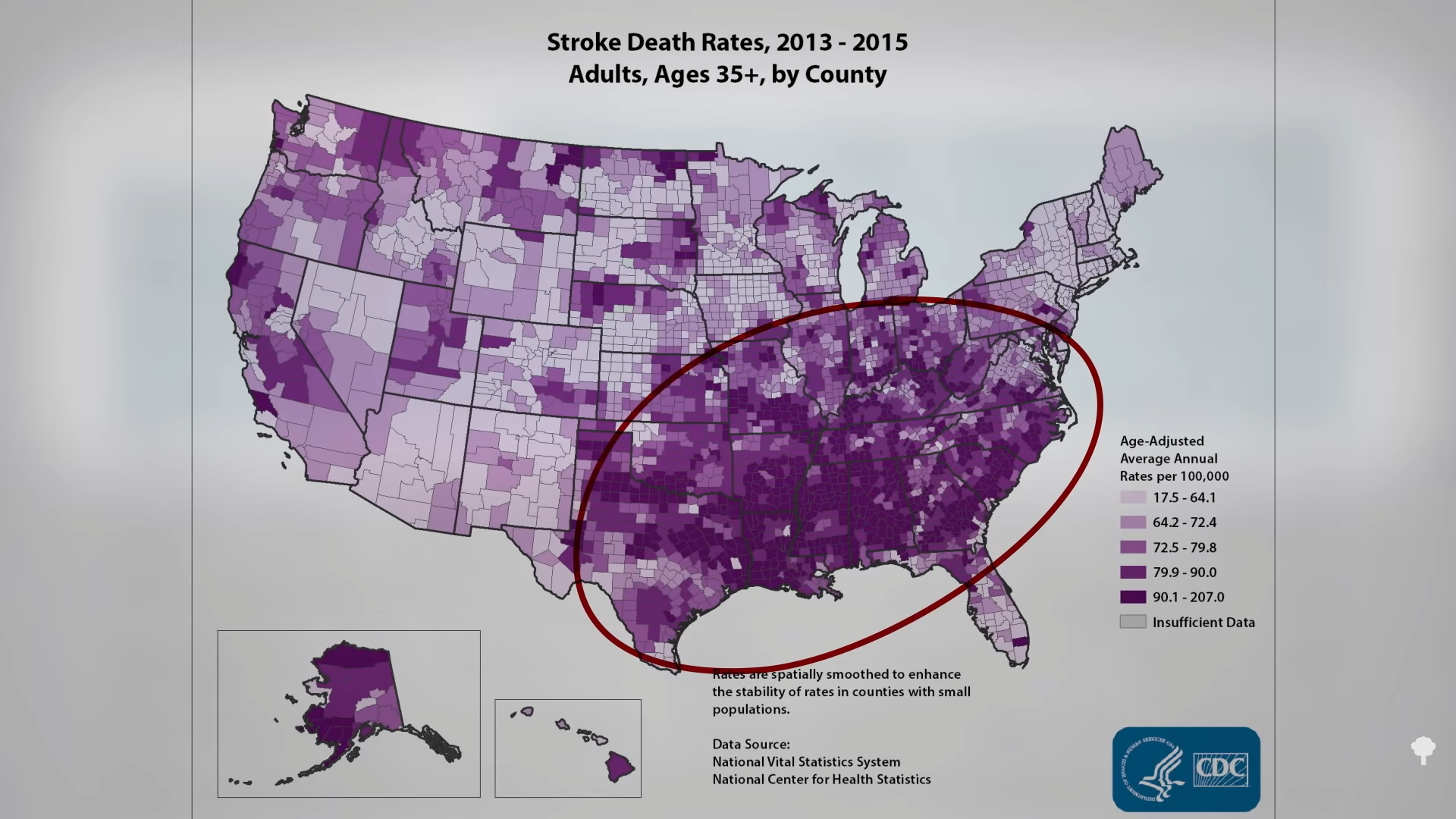 There hadn’t been a return on investment (ROI) study in the peer-reviewed medical literature until Dexter Shurney stepped up to the plate and published a workplace study out of Vanderbilt. “There was a high degree of skepticism at the planning stage of this study that active engagement could be realized in a sizable portion of the study group around a lifestyle program that had as its main tenets exercise and a plant-based diet.” Vanderbilt is, after all, in Tennessee, smack dab in the middle of the Stroke Belt, known for its Memphis ribs. (You can see a graphic of “Stroke Death Rates…by County” by the Centers for Disease Control and Prevention below and at 3:55 in my video.) Nevertheless, the subjects got on board enough to improve their blood sugar control and cholesterol. They also reported “positive changes in self-reported physical health and well-being. Health care costs were substantially reduced for study participants compared to the non-participant group.” For example, nearly a quarter of the participants were able to eliminate one or more of their medications, so they got about a two-to-one return on investment within just six months, providing evidence that just “educating a member population about the benefits of a plant-based, whole-foods diet is feasible and can reduce associated health care costs.”