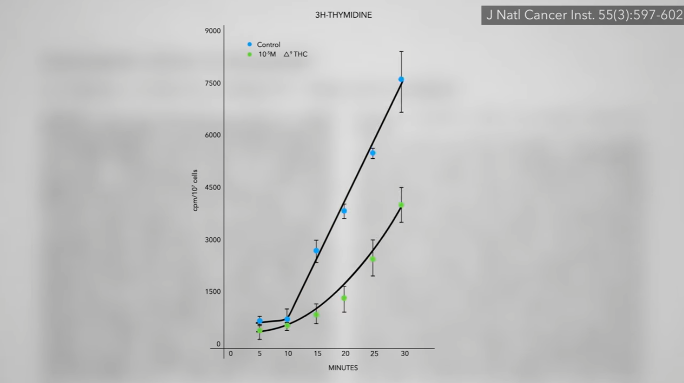 Indeed, the original demonstration of an anticancer effect, dating back to 1975, showed that THC can suppress the growth of lung cancer cells in a petri dish, as you can see in the graph and at 3:10 in my video. These kinds of data have led to wild claims of cancer cures on the internet, “extrapolating the results of preclinical work” (such as in petri dishes and test tubes) “to humans without any basis in fact.” Reportedly, cannabis has not been studied clinically as a treatment for malignancy in people—but that isn’t entirely accurate. A pilot study was performed on terminal brain cancer patients. Find out what they found in Can Cannabis Cure Cancer?.