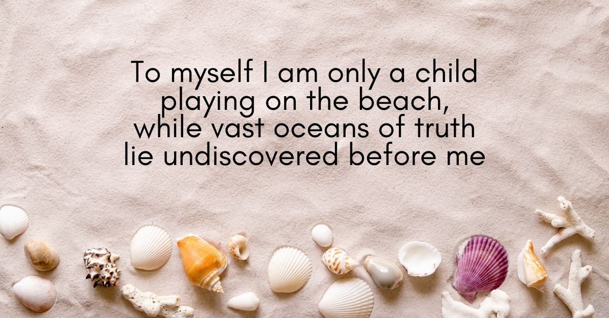 To myself I am only a child playing on the beach, while vast oceans of truth lie undiscovered before me