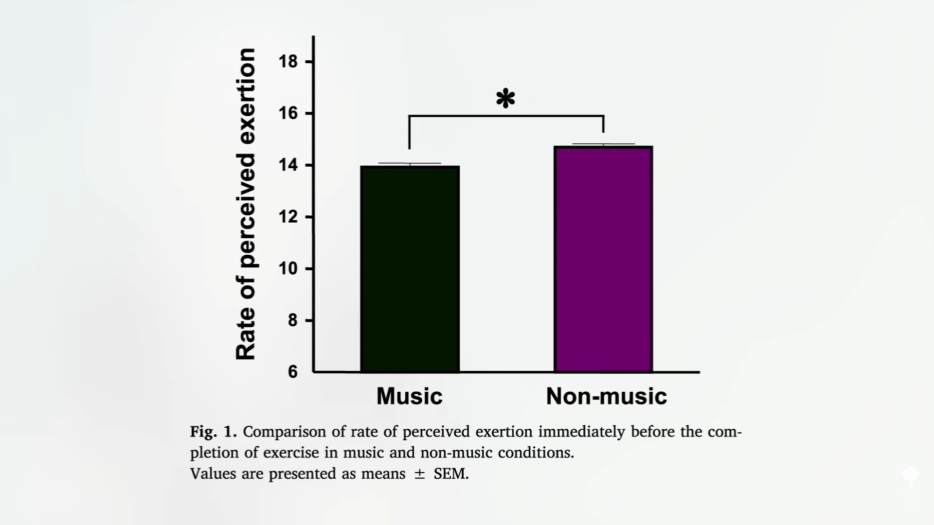 Some wise advice from a 1925 medical journal entry: “The best prescription to be written for a walk is to take a dog…and a friend.” Listening to your favorite music might also help. Music has been described as “a legal method” for improving peak performance and, more importantly, enhancing the enjoyment of high-intensity interval training. As you can see below and at 2:37 in my video, listening to a preferred playlist during exercise can significantly reduce your “rate of perceived exertion,” which is how hard you feel your body is working. When severely obese youth got on a treadmill and were told to go until exhaustion, with or without music, those listening to their favorite tunes “ran significantly longer,” tending to go about 5 percent longer. This was chalked up to “attentional distraction”; the music may have helped them keep their mind off feelings of fatigue. If that’s the case, listening to a podcast or audiobook might have a similar effect.