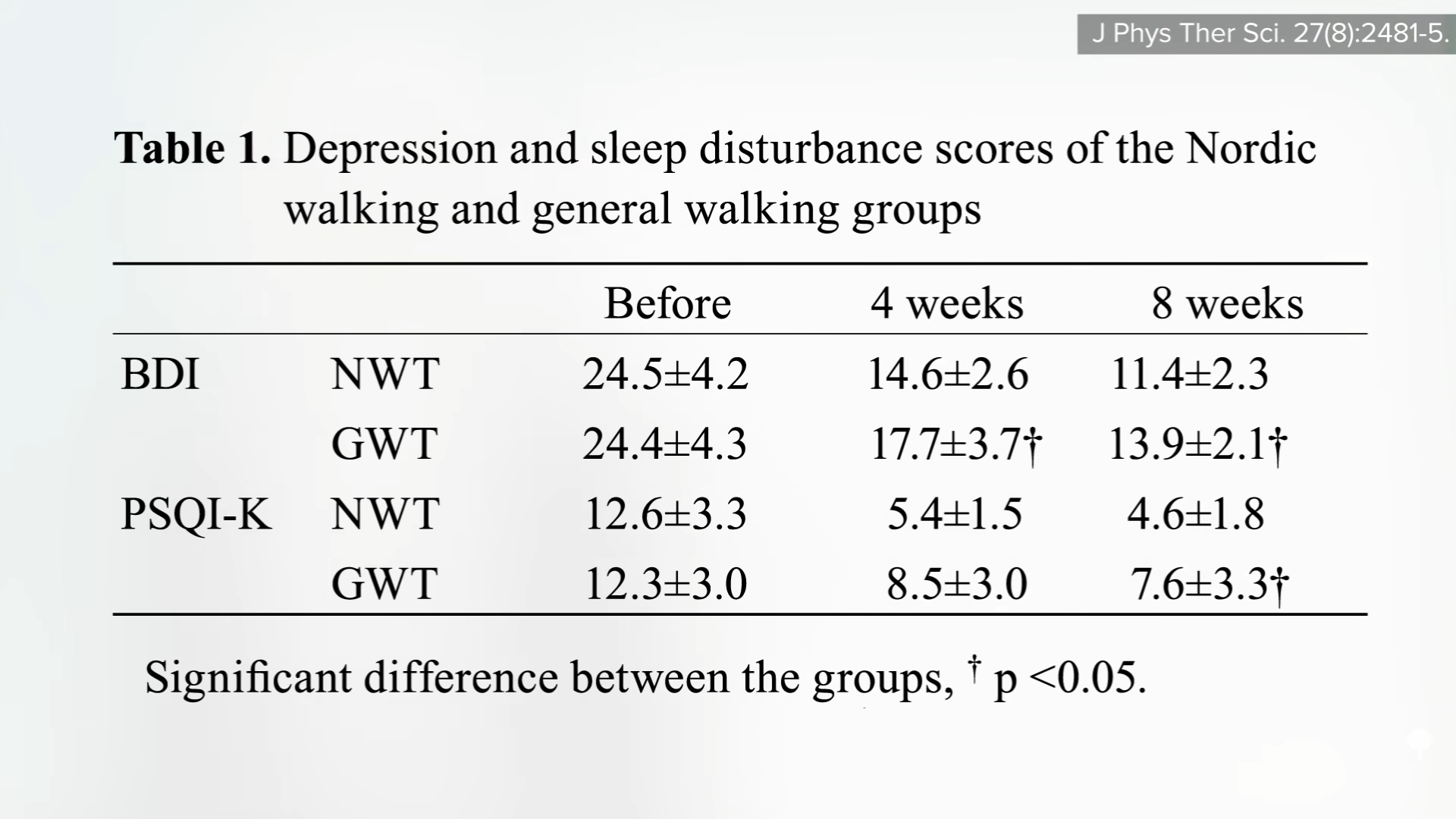 There may be other benefits, too. As you can see here and at 5:05 in my video, Nordic walking beat out regular walking in terms of reducing symptoms of depression and improving sleep quality.