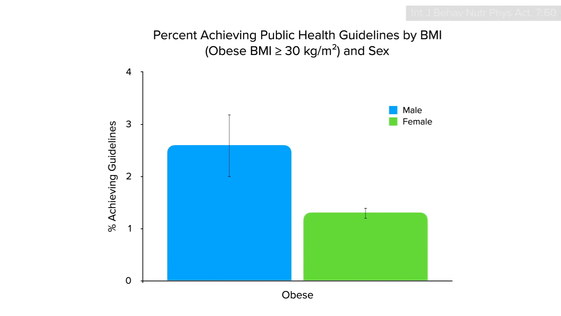 For Americans with obesity, it may be even worse. Only 2 percent reach even 30 minutes a day, as you can see below and at 0:36 in my video, and the percentage exceeding an hour of exercise a day is expected to be close to zero.