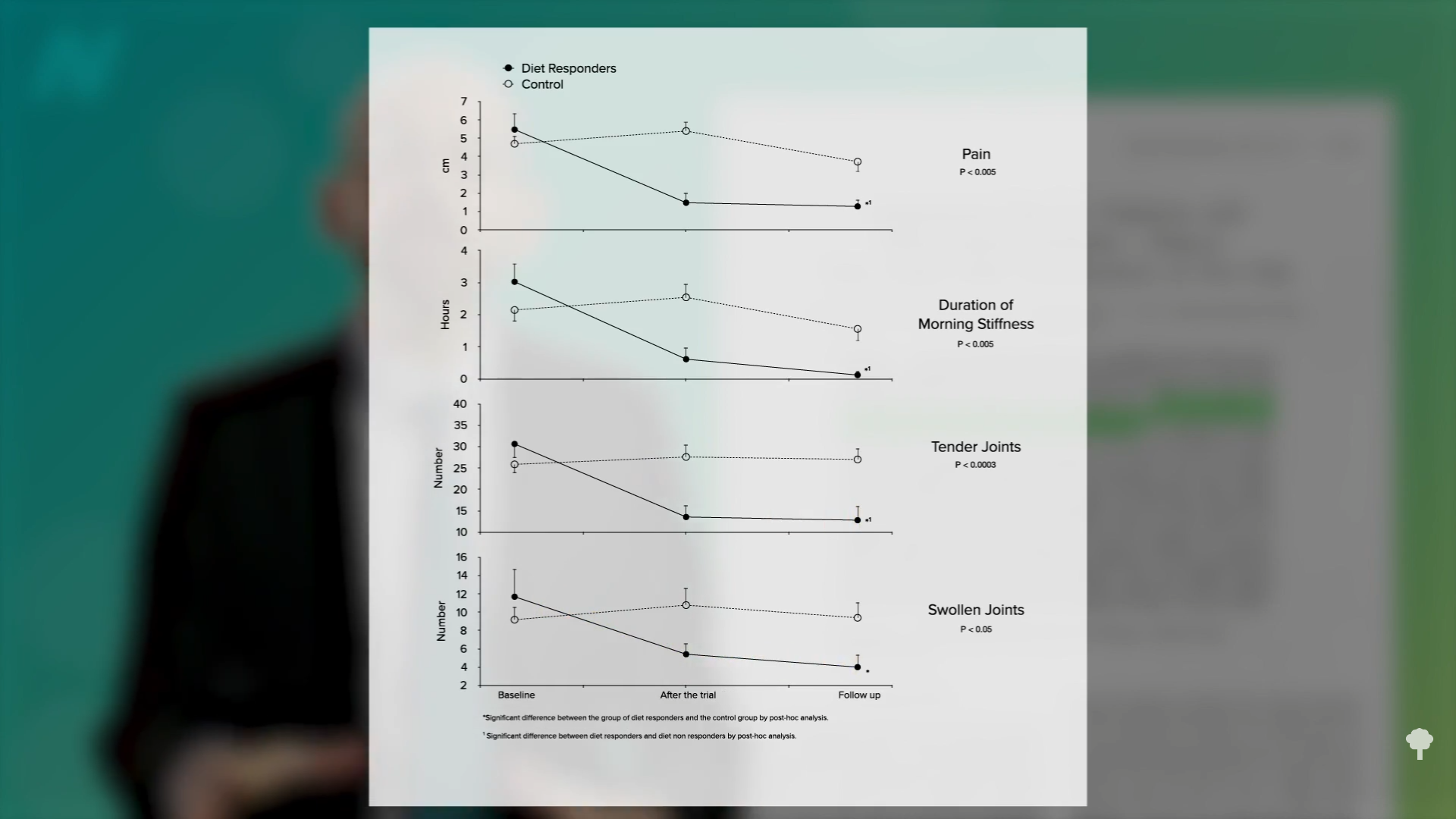 Even a year after the trial had ended, those who benefited from the diet continued to benefit in terms of less pain, stiffness, and tender and swollen joints, presumably because they stuck with it, as shown here and at 4:00 in my video.
