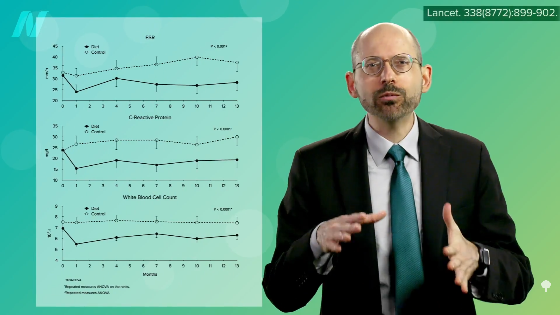 The evidence base started with case reports of water-only fasting followed by a plant-based diet. There were remarkable reports of years of pain and stiffness that were not only gone within a week but, more importantly, stayed gone on the healthier diet. One after another, just like that. But case reports are merely glorified anecdotes. There have been studies going back decades suggesting that “fasting may represent the most rapid and most available way of inducing relief of arthritic pain and swelling for patients who have RA,” rheumatoid arthritis, but they often failed to control for the placebo effect, which is “particularly important whenever self-reporting systems are used (reports on general well-being, pain, stiffness, tiredness, and the like)”—that is, subjective symptoms. There are objective measures, however, including lab tests of inflammation that don’t appear to be affected by placebos. As shown below and at 3:22 in my video Fasting for Rheumatoid Arthritis is what can be seen in controlled trials, starting immediately and staying down for at least a year.