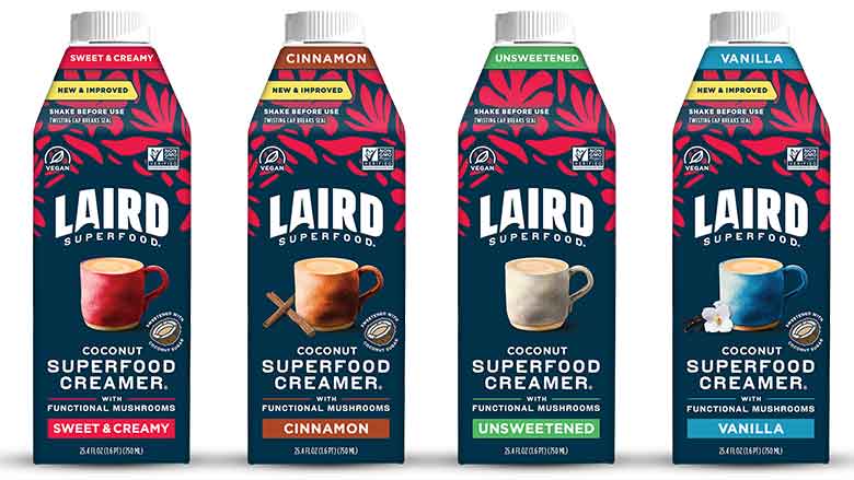 Laird Superfood, Inc., a brand of functional coffee, creamers, and superfood products made with simple, minimally processed ingredients, launched a larger version of its popular liquid Superfood Creamer with Functional Mushrooms. Available in Sweet & Creamy, Vanilla, Cinnamon, and Unsweetened, the products are rolling out onto retail shelves, including Sprouts, Erewhon, and The Fresh Market, and will soon be available at additional stores, including Kroger, Wegmans, and Whole Foods.