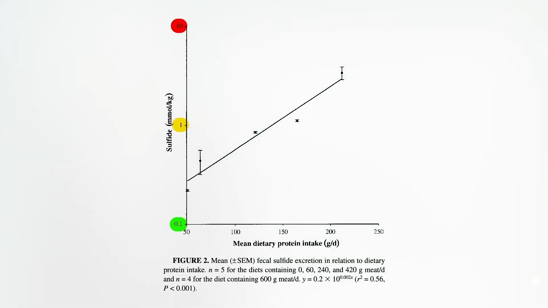 Hydrogen sulfide in the colon comes from sulfur-containing amino acids, like methionine, that are concentrated in animal proteins. There are also sulfites added as preservatives to some nonorganic wine and nonorganic dried fruit, but the sulfur-containing amino acids may be the more important of the two. When researchers gave people increasing quantities of meat, there was an exponential rise in fecal sulfides, as seen here and at 2:37 in my video