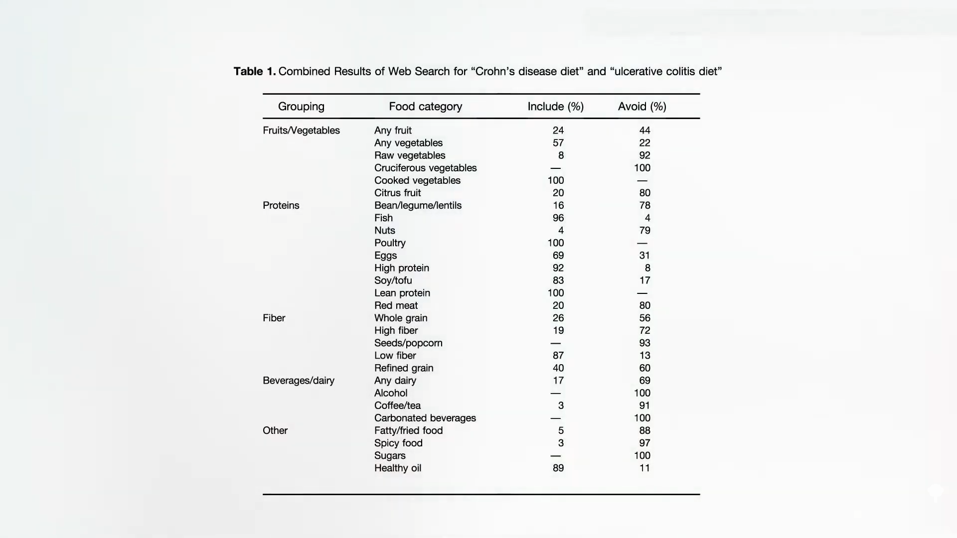 If you search online for “Crohn’s disease and diet” or “ulcerative colitis and diet,” the top results are a hodgepodge of conflicting advice, as you can see below and at 0:15 in my video Preventing Inflammatory Bowel Disease with Diet