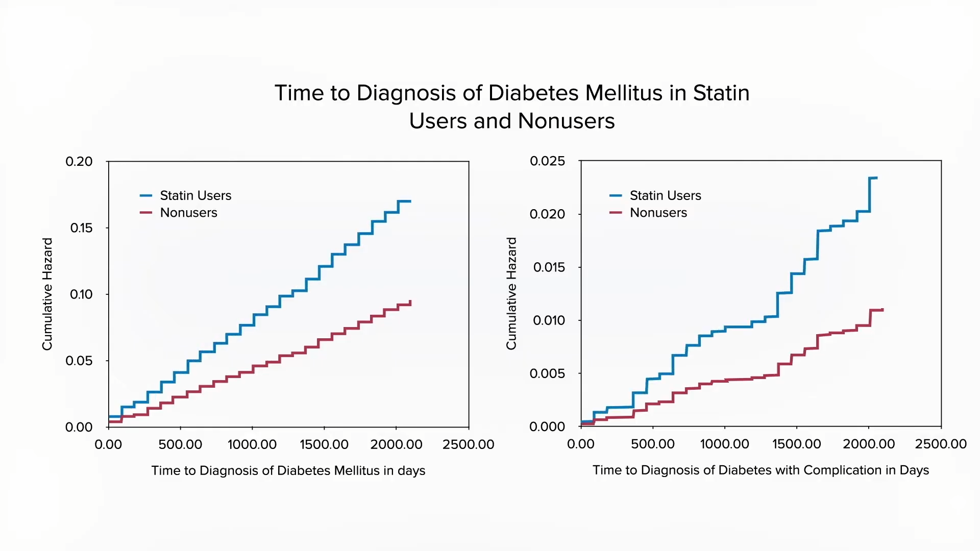 Even short-term use of statins may “approximately double the odds of developing diabetes and diabetic complications.” As shown below and at 1:49 in my video Who Should Take Statins?, fewer people develop diabetes and diabetic complications off statins over a period of about five years than those who do develop diabetes while on statins. “Of more concern, this increased risk persisted for at least 5 years after statin use stopped.”