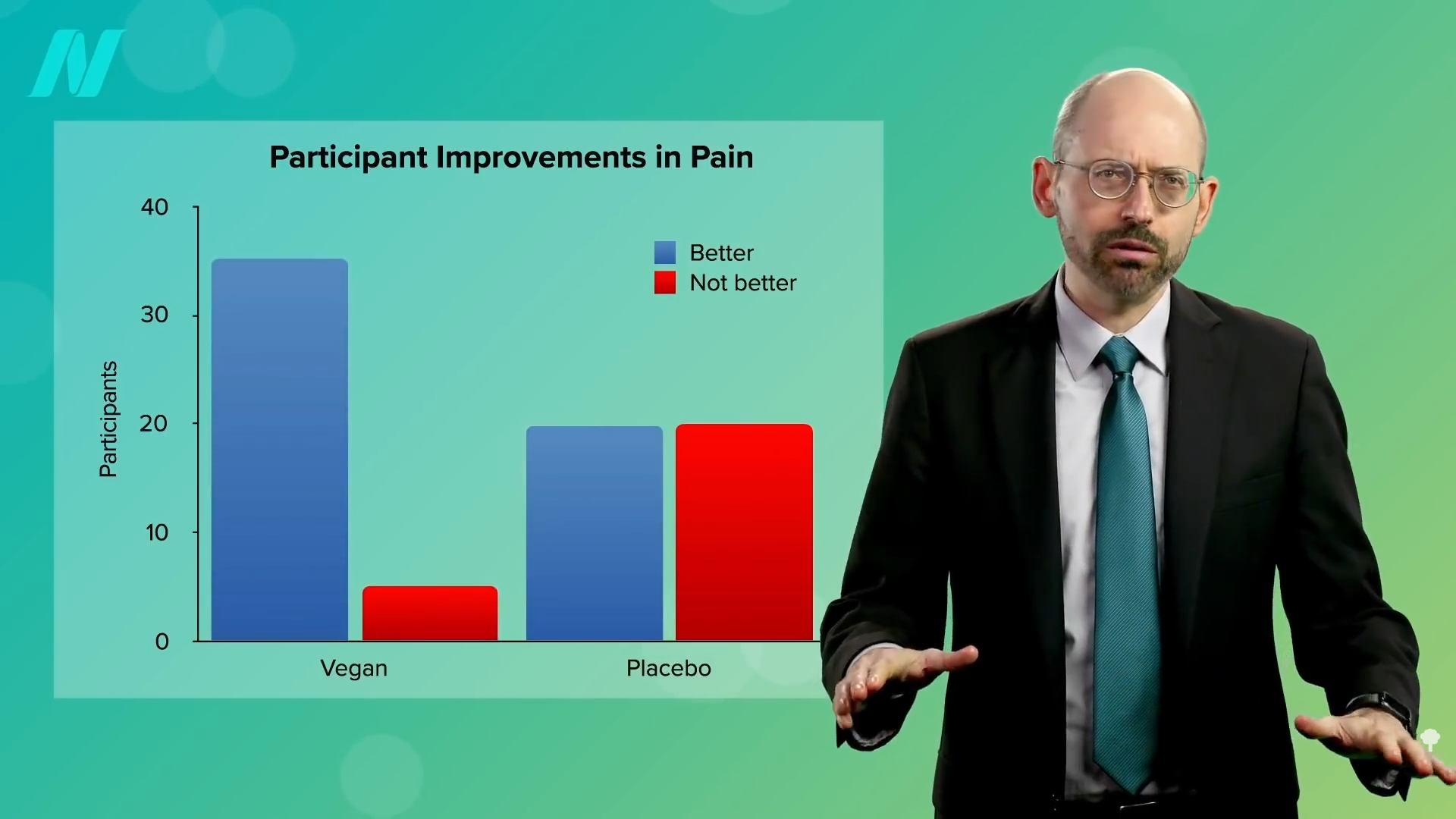 Researchers figured a plant-based diet may offer the best of both worlds, so they designed a randomized, controlled, crossover study where those with recurrent migraines were randomized to eat a strictly plant-based diet or take a placebo pill. Then, the groups switched. During the placebo phase, half of the participants said their pain improved, and the other half said their pain remained the same or got worse. But, during the dietary phase, they almost all got better, as you can see here and at 3:11 in my video.