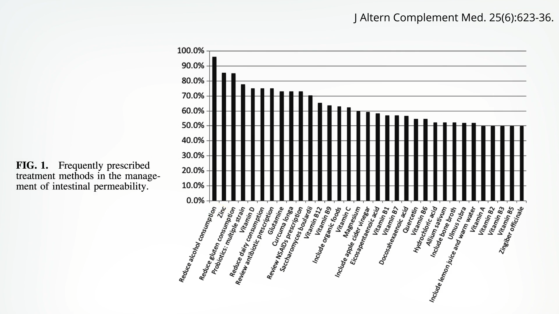 If you ask alternative medicine practitioners what treatments they use for a leaky gut, number one on the list—after reducing alcohol consumption—is zinc. You can see the list below and at 3:42 in my video.