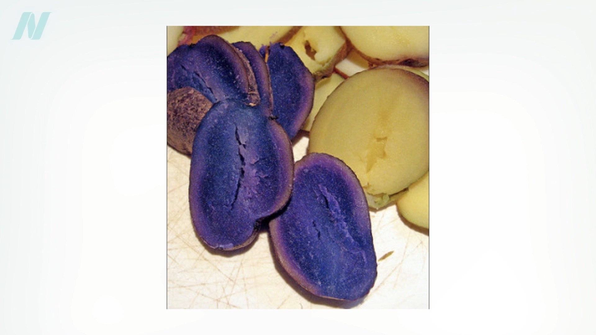 Okay, but does this translate into different physiological effects? Yes, indeed. When people ate either purple potatoes or white potatoes for two weeks, the purple potatoes improved a measure of arterial stiffness, whereas the white potatoes did not. And this translates into a drop in blood pressure, even in those already taking high blood pressure drugs, suggesting purple potatoes are an effective blood pressure–lowering agent.