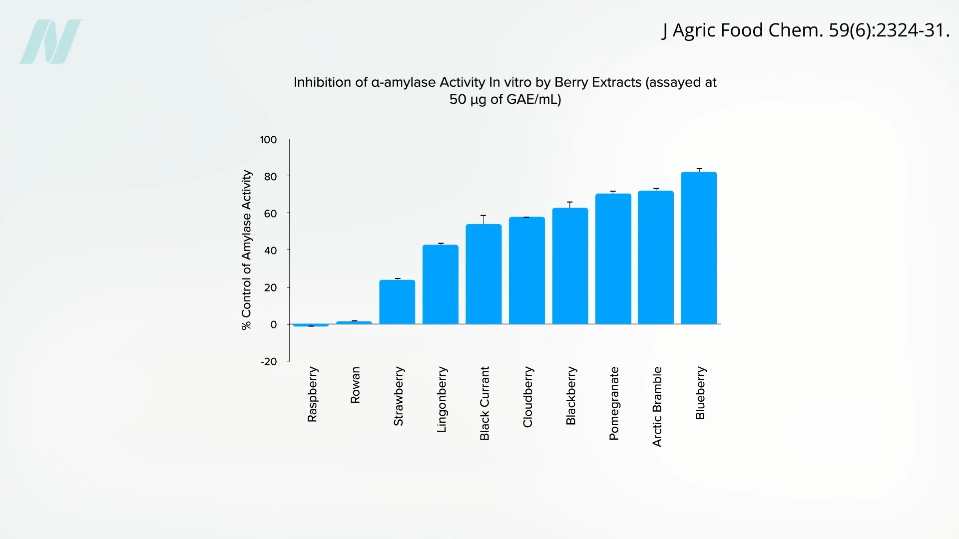 Well, the pigments in brightly colored berries can act as starch blockers, as you can see below and at 0:38 in my video The Healthiest Type of Potato.
